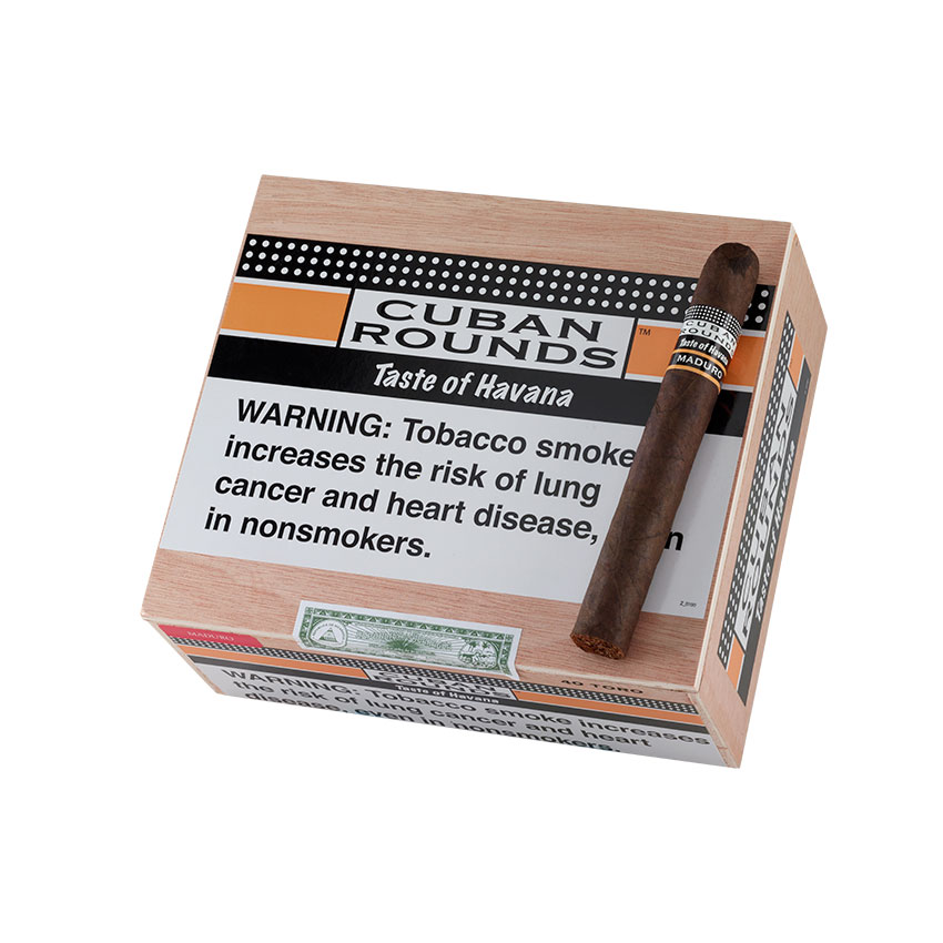 Cuban Rounds Toro Maduro cigars are budget-friendly Nicaraguan puros, crafted with a short filler blend of aged Cuban-seed Nicaraguan tobaccos and packaged in a sweet dark maduro wrapper. Cuban Rounds are Havana inspired with each puff designed to help you set jet set without a passport. Rapido, order now!