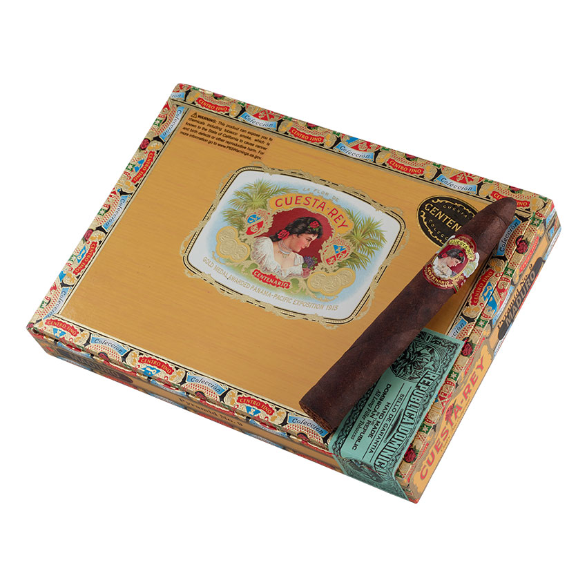 Expertly hand-rolled by A. Fuente in the DR, the Cuesta Rey Centenario Pyramid No. 9 Maduro and ‘Centennial’ cigars are distinguished by their smooth, rich flavor blended from only the finest long filler tobaccos, Dominican binder and five-year-aged Connecticut shade natural or Connecticut sun-grown Maduro wrappers. Every Cuesta Rey Centenario Pyramid No. 9 Maduro and Centennial cigar is aged inside a special cedar-lined humidor for 120 days to achieve the ultimate in taste, flavor and aroma.