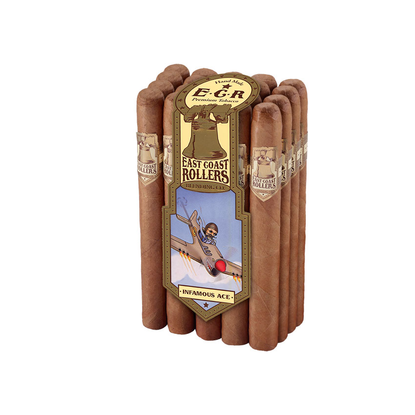 Cigar Lovers indulge in East Coast Rollers Infamous Ace Cigars – a line exclusive to Famous Smoke Shop. Infamous Ace cigars offer the classic Churchill shape, crafted with a Dominican leaf blend that’s semi- sweet delivering smoke that’s slightly grassy, with a nice black pepper flavor that shines through midway. If you enjoy a medium bodied cigar on the cheap, you’ll be plenty pleased with East Coasts Rollers Cigars. Check out the entire collection today!