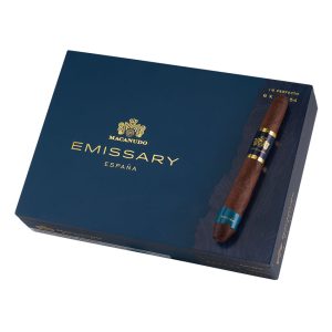 Savor the exceptional flavors of Macanudo Emissary España Robusto. This gem features a U.S. Connecticut Broadleaf wrapper and a 10-year-aged Havana seed filler grown near Riolobos, Spain that imparts a rich, unique character. Skillfully blended with aged tobaccos from Nicaragua, Colombia, Dominican Republic, and the US, each draw unveils a nuanced and unforgettable smoking experience. Indulge in the intensity and complexity of this harmonious five-country blend with a hefty Famous Smoke Shop discount to boot!