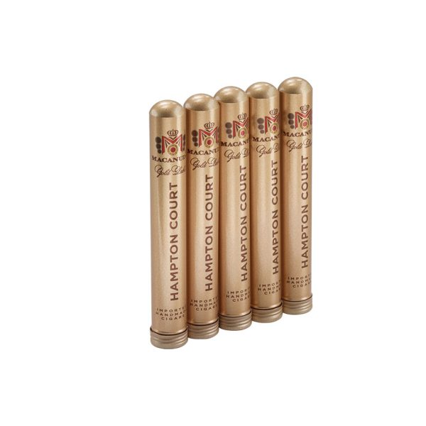 Macanudo Gold is a limited-edition premium cigar that is smooth and mellow with subtle flavors of creamy nuts and spice. Hampton Court wears a golden Connecticut shade wrapper harvested from the first and second priming. Its 1998 vintage Dominican Piloto Cubano & Mexican fillers make this cigar a one-of-a-kind experience.