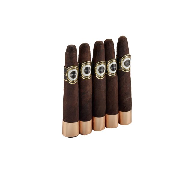 The Onyx Reserve Torbusto is a figurado shape cigar blended for cigar smokers who love full tobacco flavor in Maduro cigars. Square-pressed and well-packed with a blend of spicy Nicaraguan & Peruvian fillers and blackened Conn. wrappers for an extra-rich taste with an exquisite aroma.
