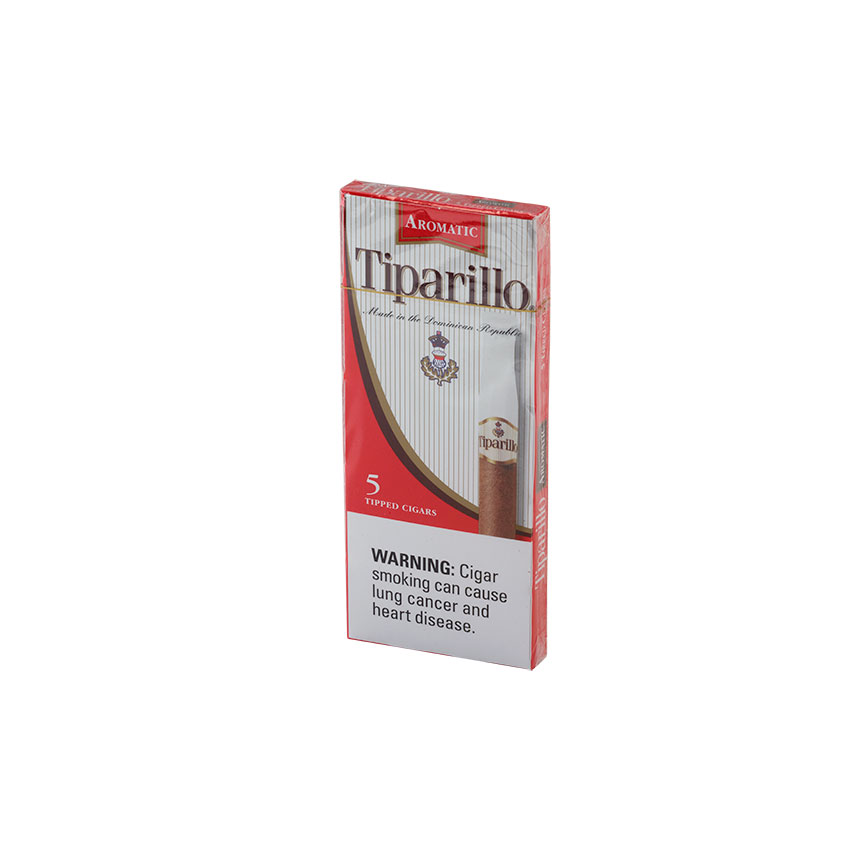Tiparillo Aromatic 10/5 small cigars are made in Dothan, Alabama with homogonized sheet wrapper and binder, and a blend of filler tobaccos. All sizes feature trademark plastic tips. Both a mild and a sweet blend are available, and provide smooth, easy-smoking tobacco flavor in a short smoke.